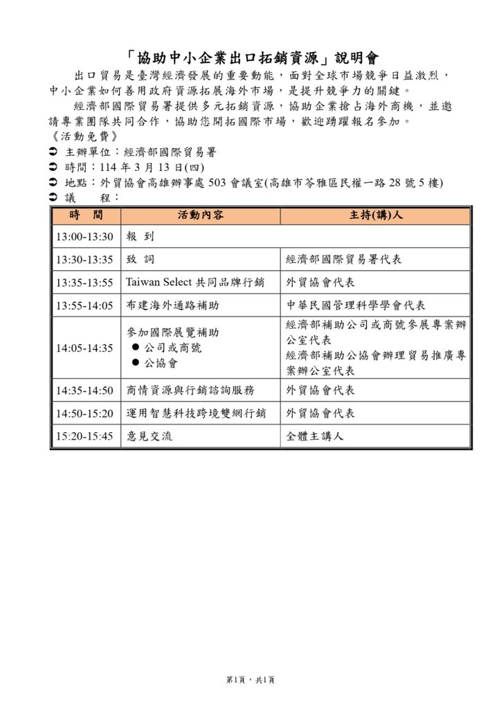 • 說明會內容: