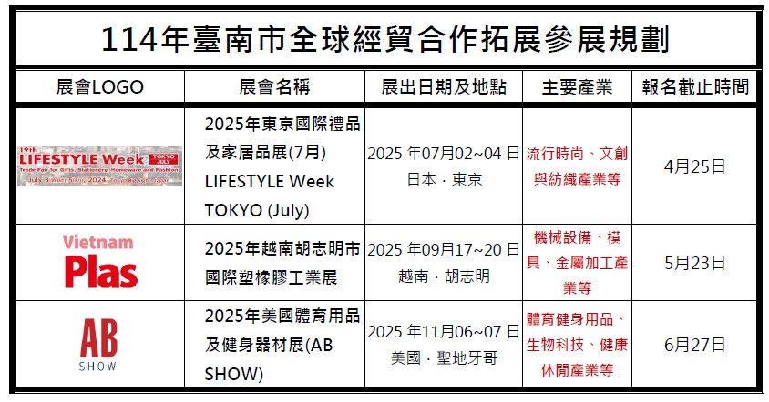 2025臺南市全球經貿合作拓展徵展