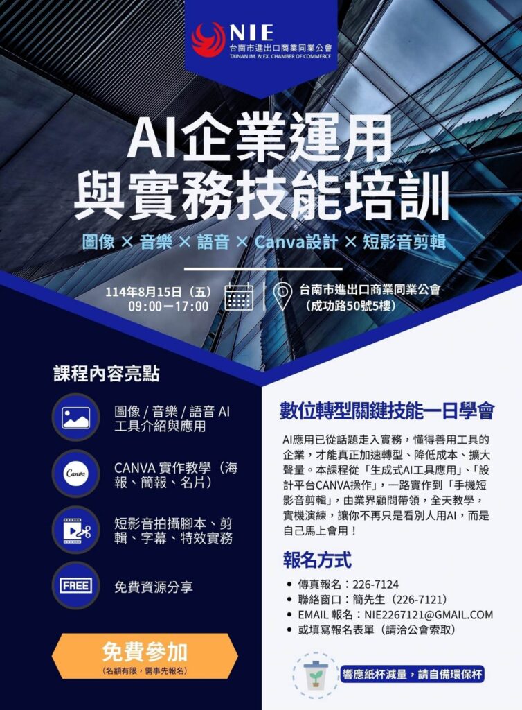 報名表下載:11408015 AI報名表