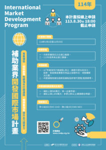 by 69105704 11 6 月, 2024 政府機關部門公告資訊, 經貿活動暨說明會資訊 —請點選下列欲參加場次進入報名系統— >>6/26(三)臺南場說明會<<< >>7/15(一)臺北場線上說明會<<< >>7/15(一)臺北場實體說明會<<< 官方網站