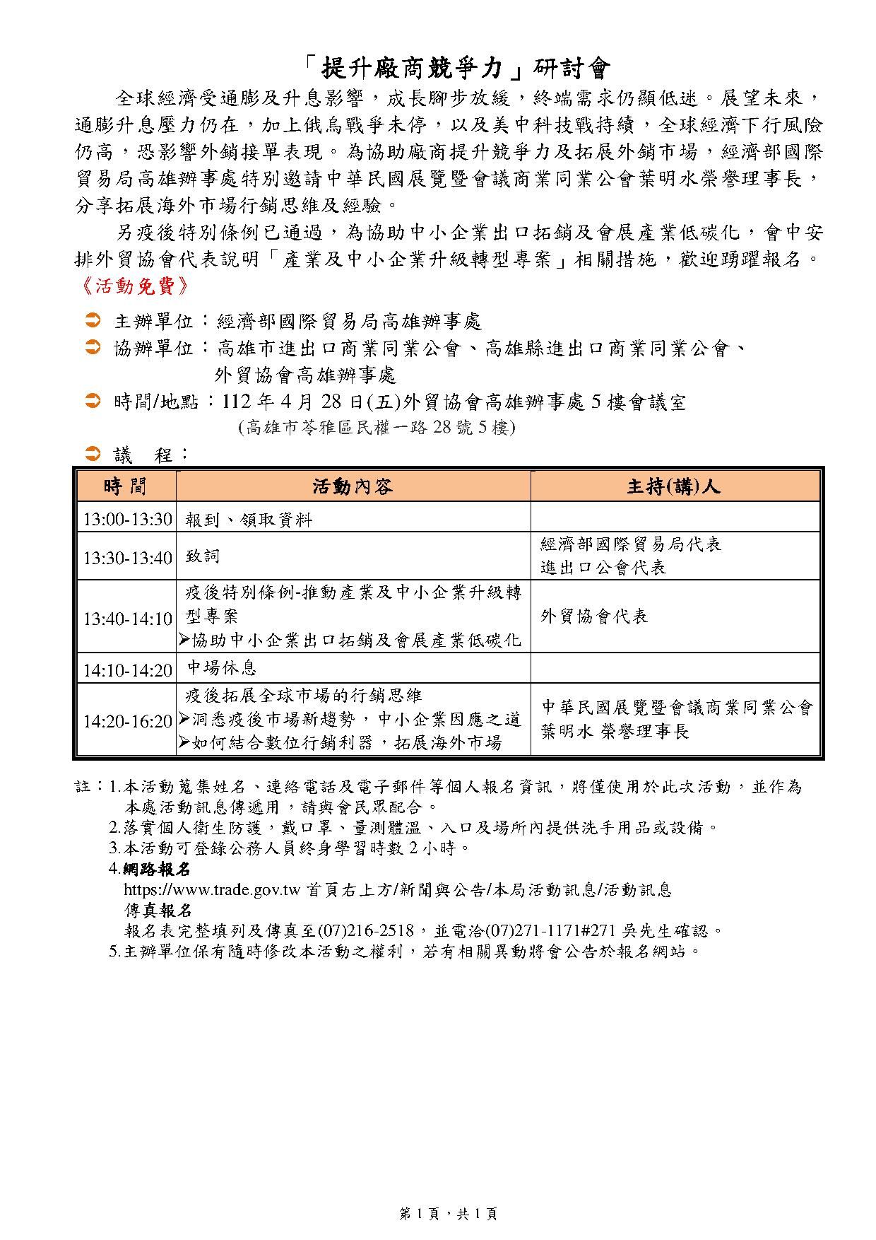 「提升廠商競爭力」研討會 (4/28高雄場)